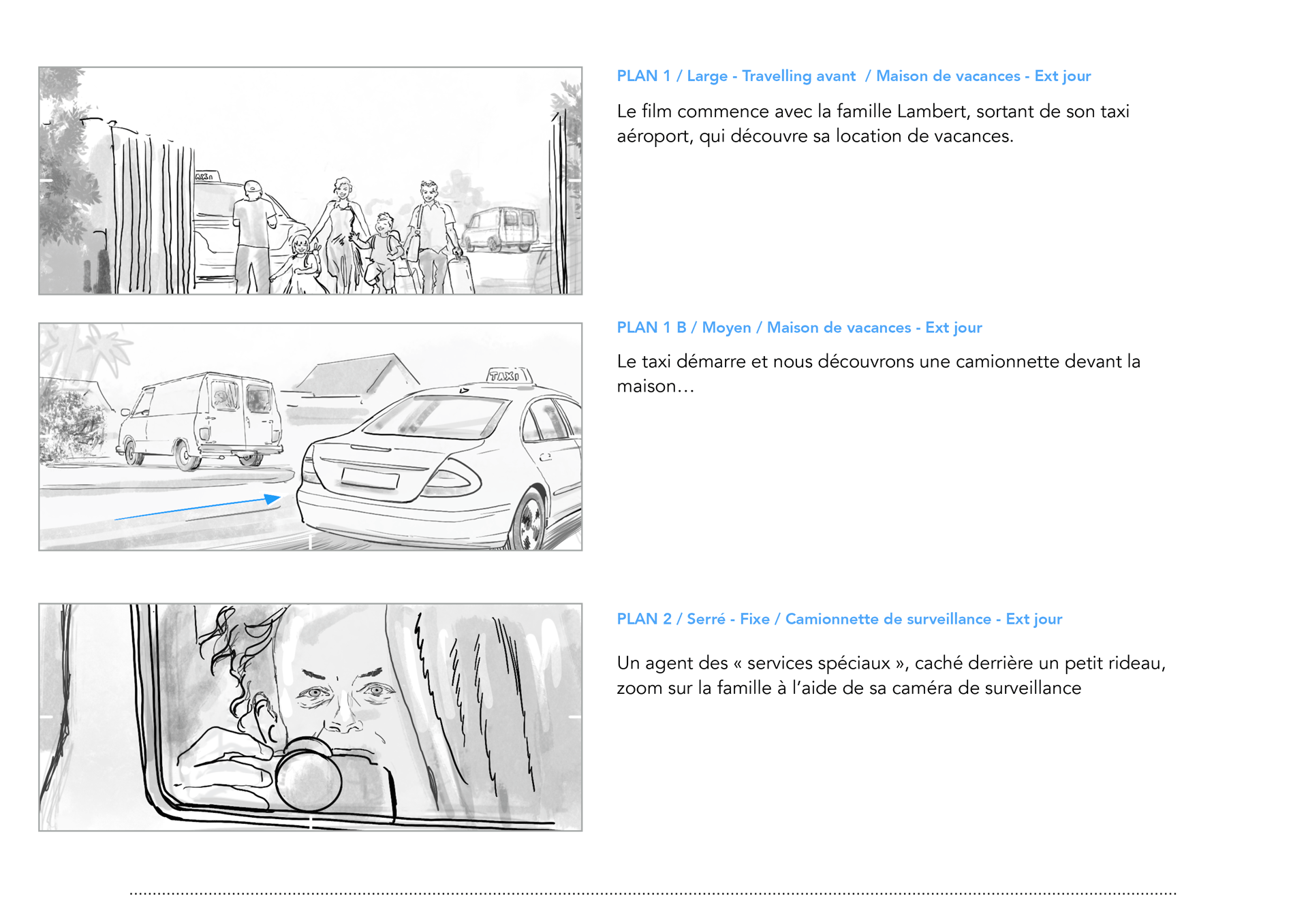 Shooting storyboard: poursuite en voiture et scènes d’effets spéciaux.