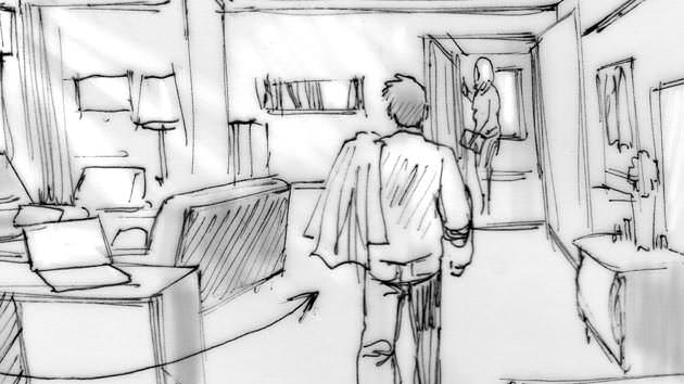 Shooting Storyboard dessiné pour préparer le tournage d’un campagne TV.